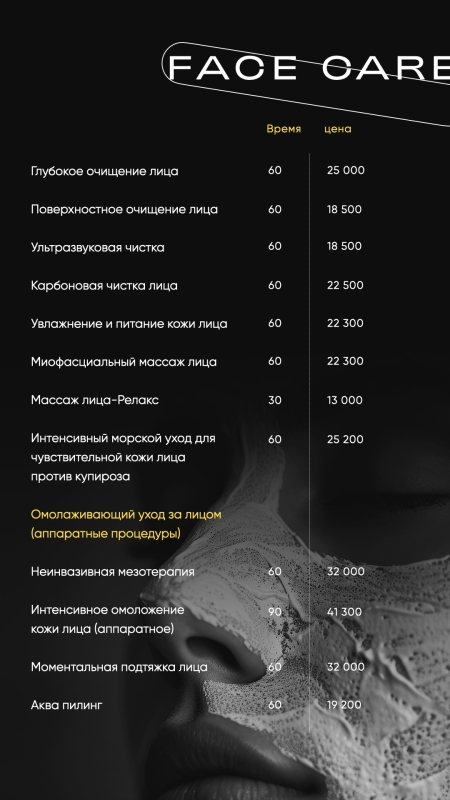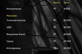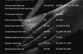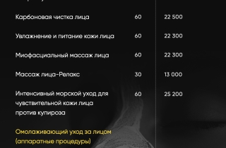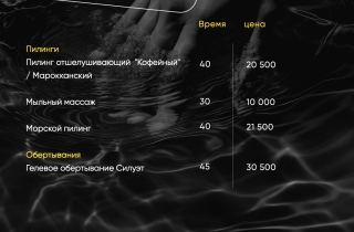 Прайс-лист на СПА процедуры